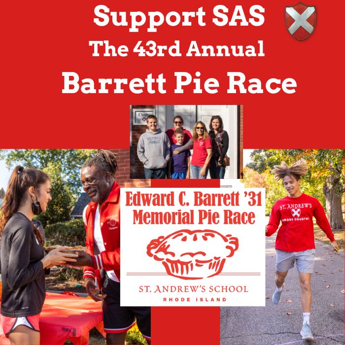 The Barrett Pie Race is a time-honored St. Andrew?s tradition that kicks off Fall Family Weekend in October. This one-mile sprint around campus honors the late Ed Barrett ?31, a King Medal winner, a teacher, and a member of our Board of Trustees ? and is open to all St. Andrew?s students, faculty, and staff.