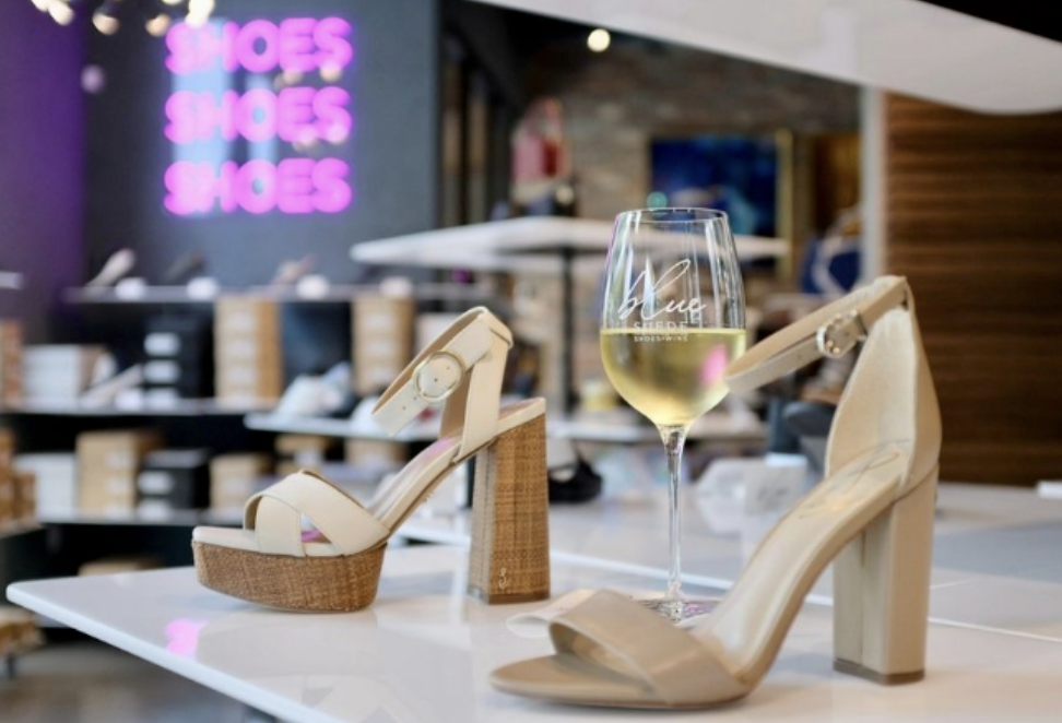 With this lounge reservation certificate, you and your guests can expect: an amazing time browsing the best shoes, handbags, and jewelry; the lounge held for your group exclusively; a grazing board featuring locally sourced cheeses and charcuterie (serves 4-6); a chilled bottle of one of our hand-selected wines; 2 hours free parking (validated) in the Willa garage beneath Blue Suede.