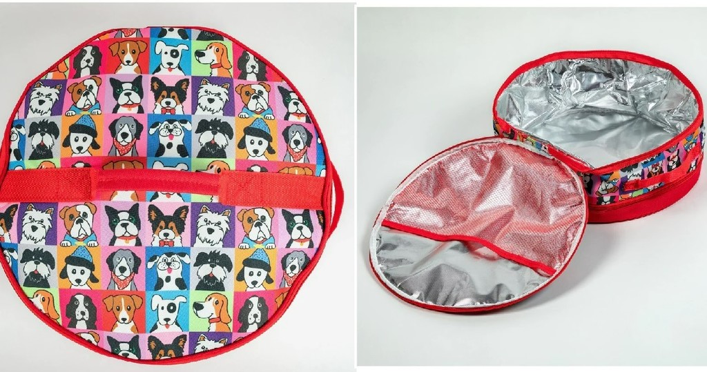 Insulated casserole carrier 15x15x6 inches. Great for holiday, office and family reunion potlucks. Includes a fun large flour sack towel.