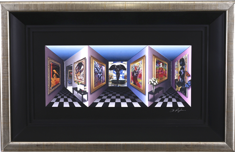 "Angels - Art in Motion" is a limited edition print that consists of giclee on canvas hand-assembled on card stock elements and mounted on a 3-D board structure. This piece is hand-signed by the artist in ink on the lower right. Appraisal by Park West included with the piece.