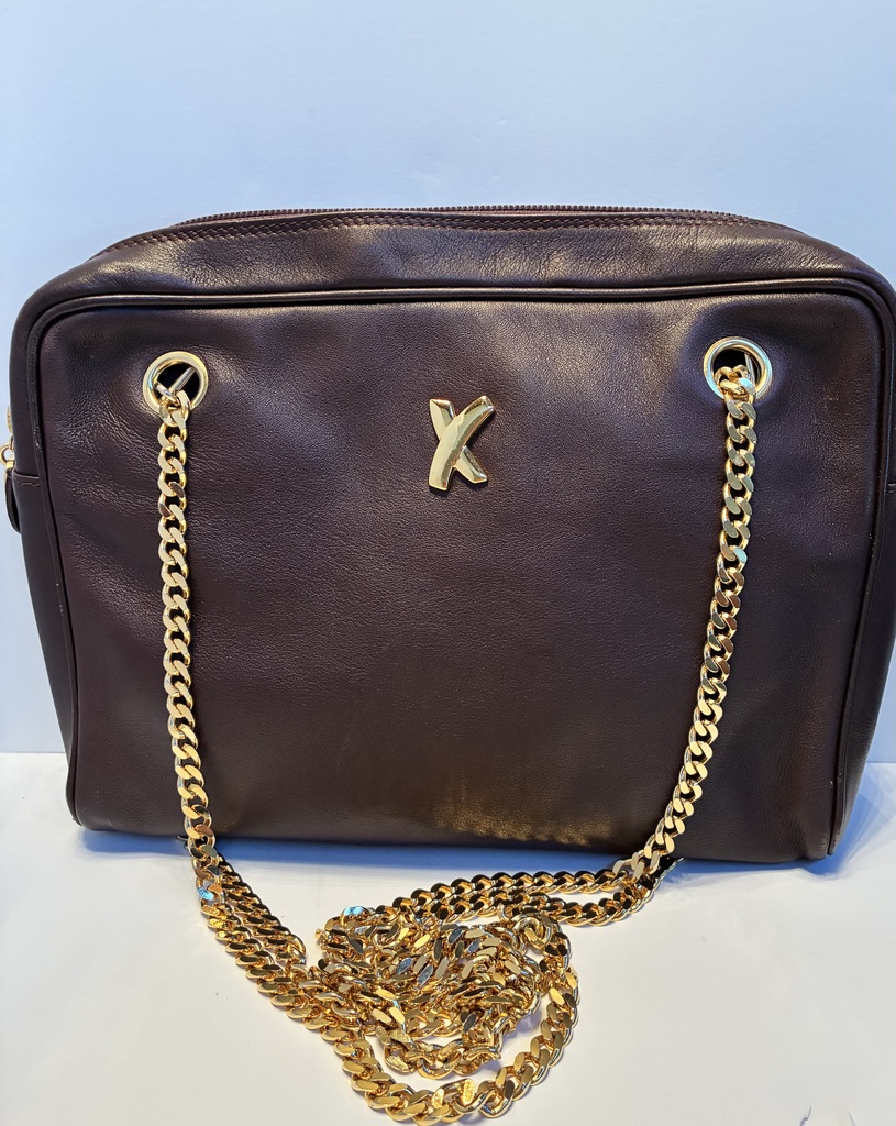 Beautiful vintage Paloma Picasso brown leather purse with gold chain.
