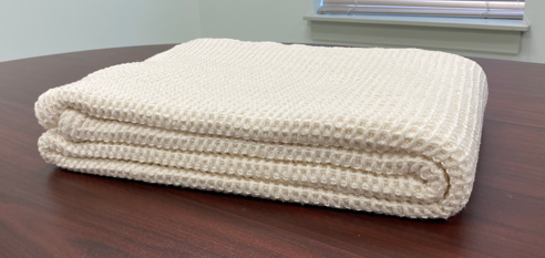 Cozy up under this cream colored, waffle throw blanket from Maine Woolens! Blanket is 100% cotton.