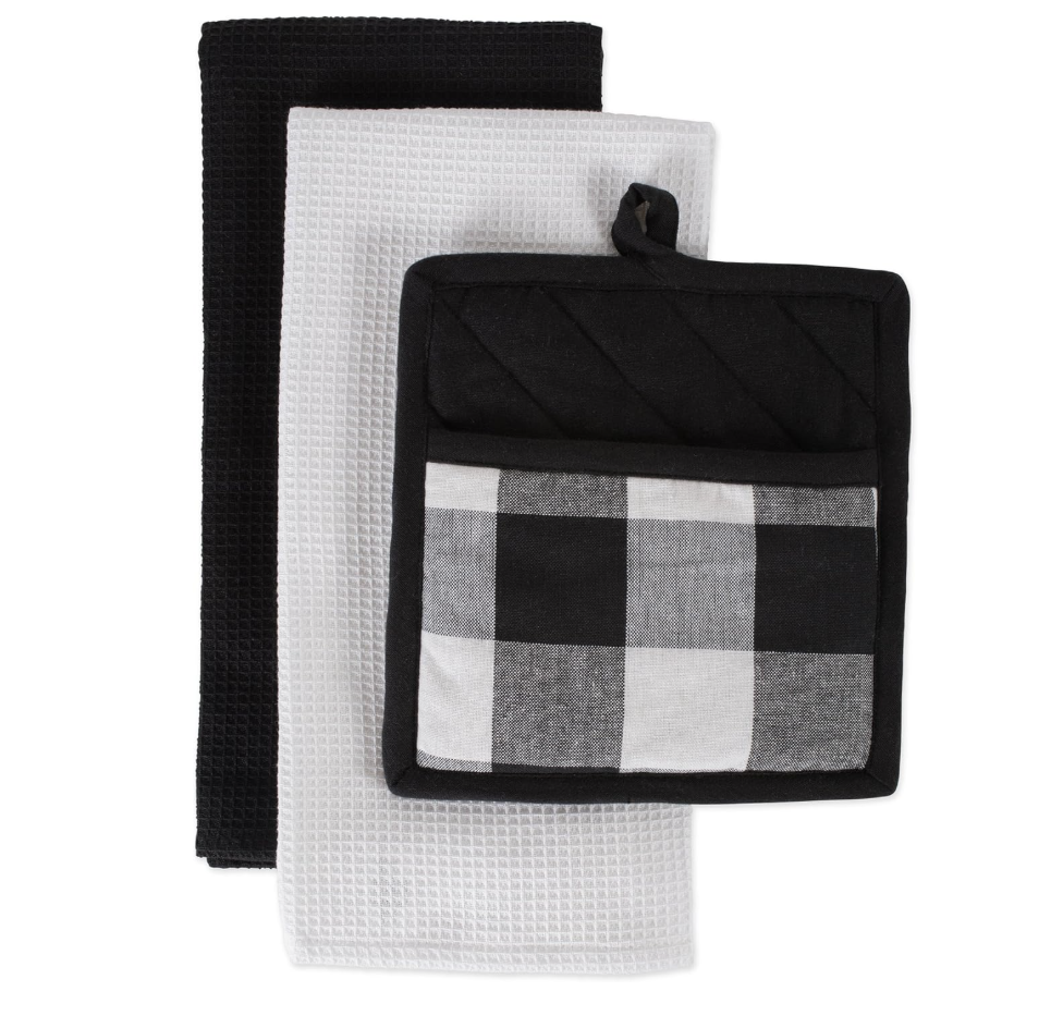 Buffalo Check Potholder and two waffle weave Dishtowels
