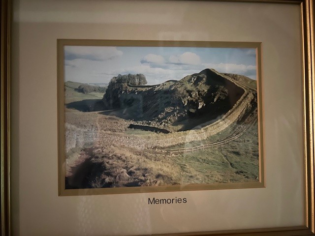 This is a Memory of the Hadrian's Wall, Northumberland! Great addition to your art collection! Mounted in a Beautiful Brown Wood Frame 17 x 14! Bid Bid Bid!