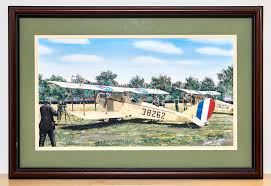 Description from Sam Lyon?s Website- Jenny JN-1 is loaded for its first regularly scheduled mail flight from Washington DC to New York City in 1918. The exact route the U.S. Postal Service used Jenny?s for airmail service was between Washington, D.C., Philadelphia, and New York in 1918! This 22 x 28 Brown Framed, Signed with Gold Name Plate, and is 54 of 300! Bid Bid Bid!