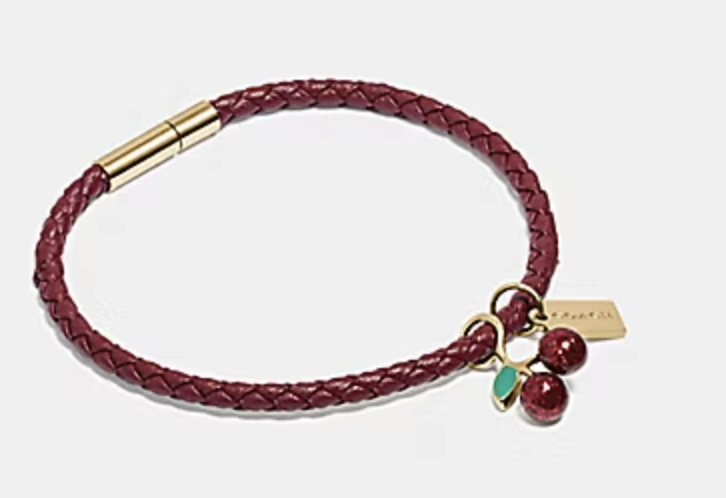 Leather, gold-plated brass and enamel| Twist closure| 6 1/2" (L)