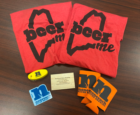 Enjoy $50 to spend at Nonesuch River Brewing and a special swag bag that includes two koozies, a key chain, two large red Beer ME t-shirts, and a sticker.