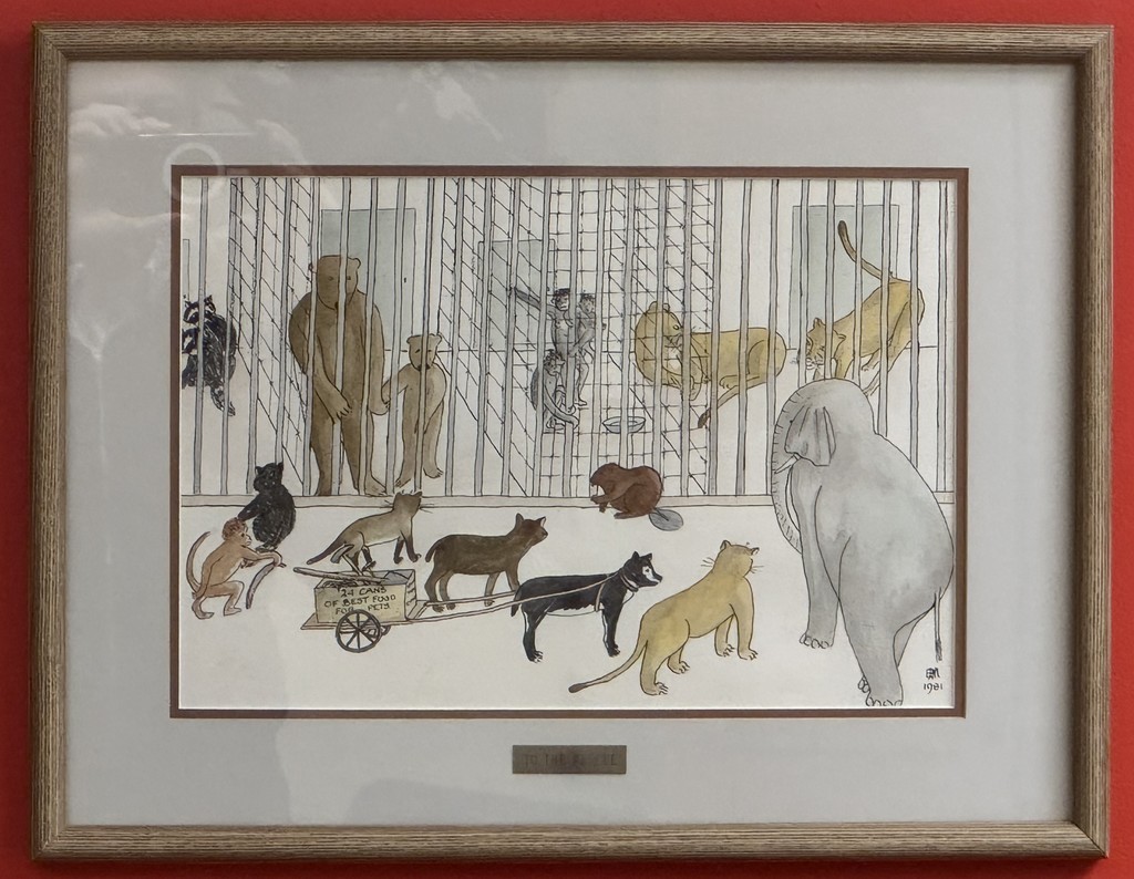 Framed pen and ink drawing by Elizabeth Hopkins (1894-1991). Dated 1981. Professionally framed and matted. Artwork is 10" x 14" and frame is 15" x 19".