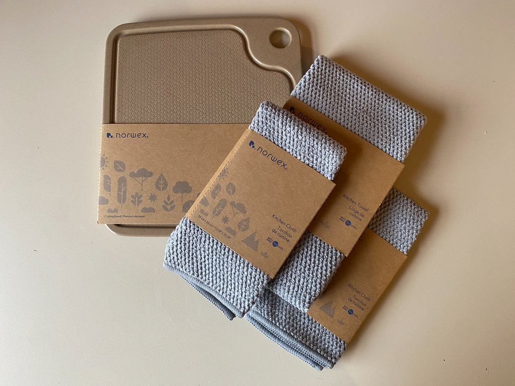 Norwex Cutting Board: 8" x 8.5" and two kitchen cloths and one kitchen towel