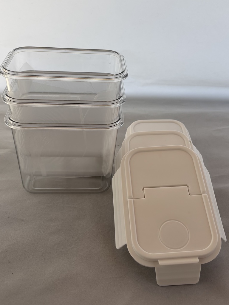 This item is a set of 3 food crispers with snap lids.