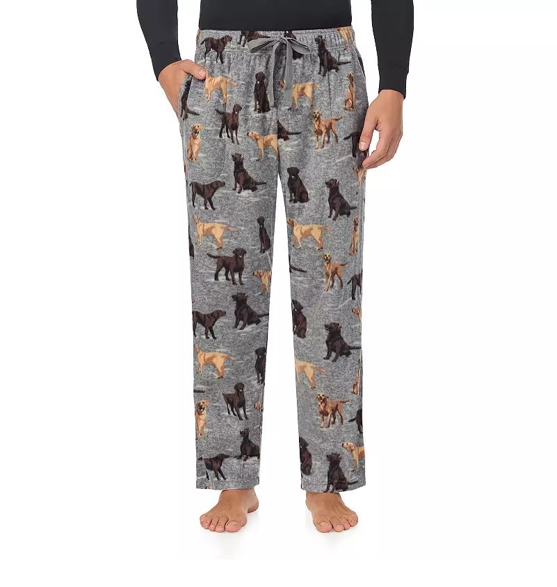 You will love the soft comfort of these mens Cuddl Duds fleece pajama pants. Features functional drawstring, no fly, two side pockets. Made from soft microfleece fabric. Mens size large with a 30.5 inch inseam. Could also fit a woman as no fly.