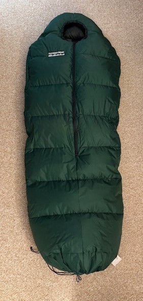 This Feathered Friends sleeping bag features arm holes, foot & leg hole at the bottom, and a center topside zipper. The zippered arm holes of the Wren series allow you to wear your bag like an uber-warm parka, and the two-way center zip provides a convenient opening to remain tied in while you sleep. The Wren's drawcord bottom can be opened up and easily slipped above the waist. Making trips out of the tent in the wee hours of the night less stressful. Features: 800+ fill Goosedown, P-BHAL shell (green), Temp rating 30 degrees, standard length. MSRP was $519.00. This is a new, unused sleeping bag. The newest version of this bag is called the "Winter Wren".