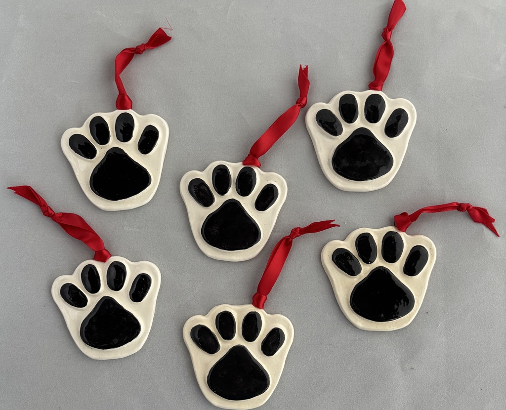 Add these festive ornaments to your holiday decorations. This is a set of 6 very cute Christmas ornaments shaped like paws.