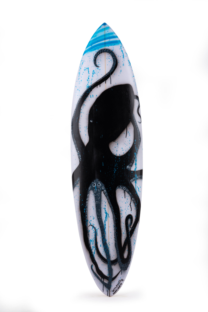 In Embrace of the Sea, Wyland channels the grace and mystery of the ocean throug the fluid motion of an octopus painted across a high performance surfboard. Using the unique shape of the board, Wyland draws attention to the arms that symbolize both strength and serenity. "For kids who often experience the world in overwhelming ways, I wanted to show how the ocean can offer focus and calm. It certainly meant all of those things to me when I was young," Wyland says. "Hopefully, this can be an ever present reminder to anyone who sees this board that the ocean heals not only the body but also the heart.?