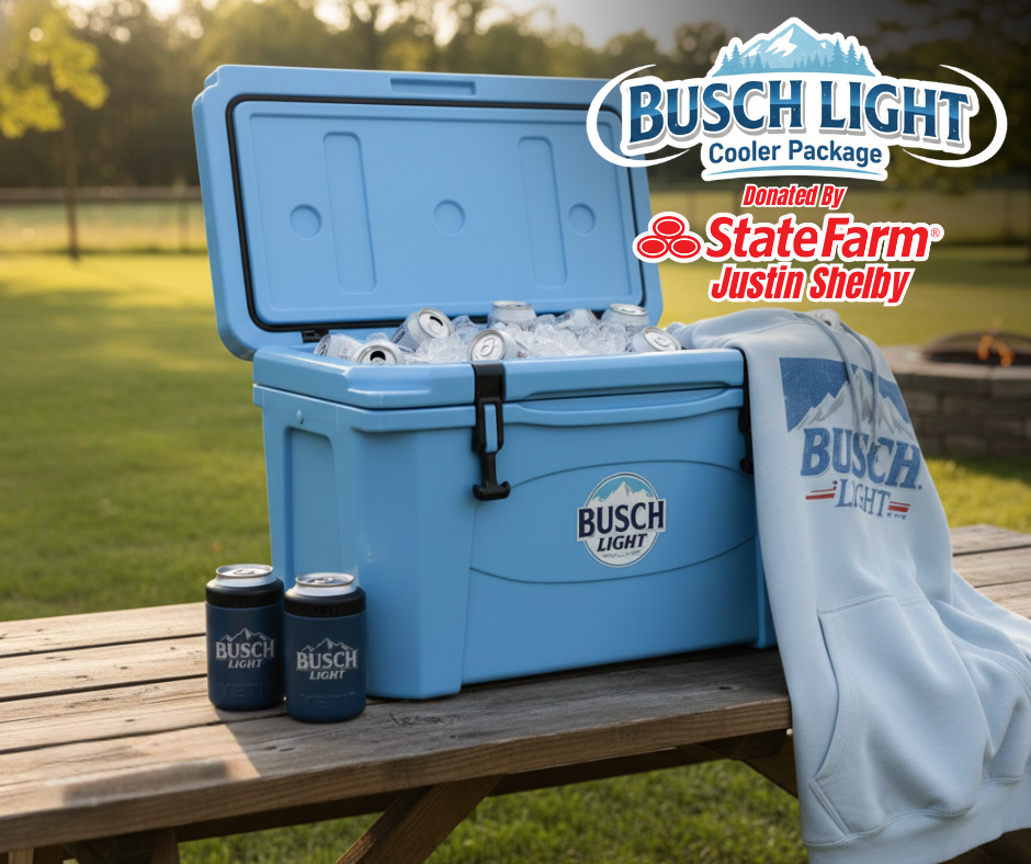 Gear up for your next outdoor adventure, BBQ, or tailgate with this fantastic Busch Light Cooler Package donated by Justin Shelby State Farm! Perfect for any Busch Light enthusiast, this package combines essential gear for keeping your drinks cold and your style on point.