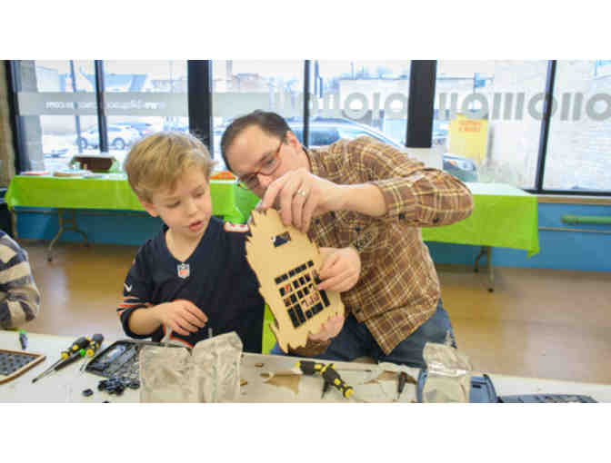 Theme of party: "Cut-Drill-Connect" Kids will get lessons on how to use various hand tools and power tools in our workshop to make their own creations. Fun way to introduce kids to tools and give them the creative space to make some cool stuff! Kids will be allowed to take home what they make.