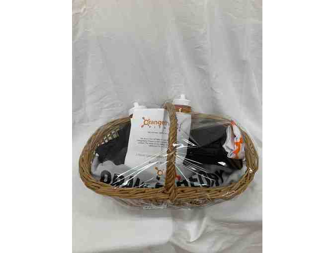 2 water bottles and 1 month membership, hat, hand towel, small tank top