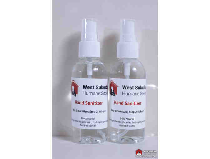 WSHS hand sanitizer 2-pack of 3 oz. travel-sized bottles. Made in the USA using the WHO-recommended formula: 80% Alcohol, other ingredients: glycerin, hydrogen peroxide, distilled water.