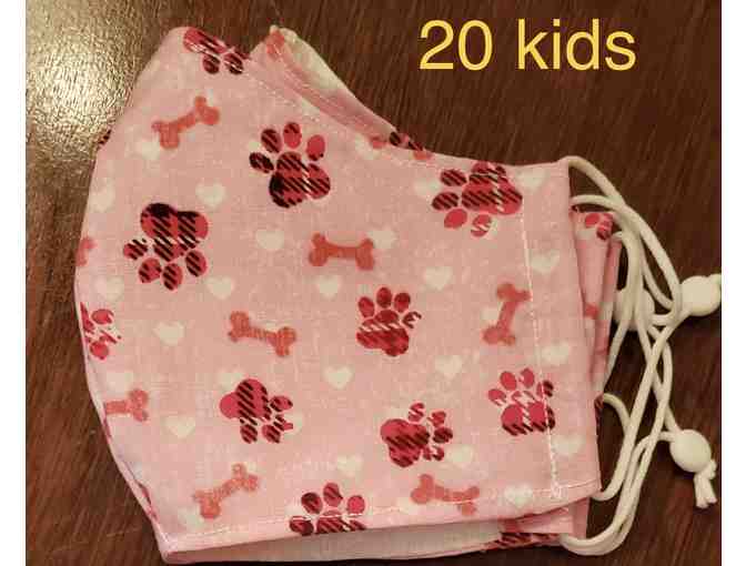 Beautiful pink child size mask with hearts, paws and bones! Two layers of 100% cotton with slit for filter. Can be reversed to white. The elastic for the ears has little adjusters included. The ages are approximate for the mask. Not for medical use.