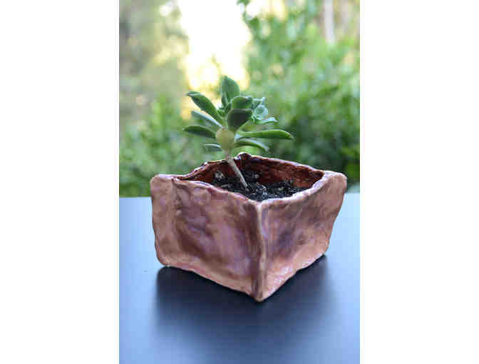 Chicks and hens succulent planted in a handmade square pinch pot with colorful glazes