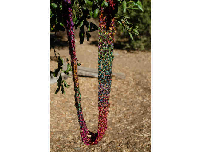 Variegated red, green, gold, multi-colored infinity scarf. Adult, 1 size fits all.