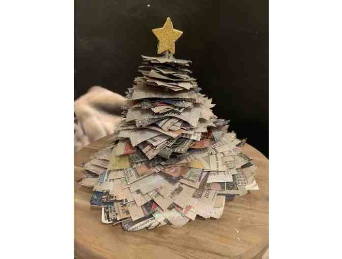 Glittered newspaper tree handcrafted 7" tall x 8" wide
