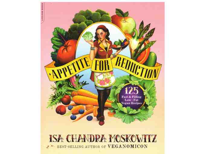 from the cover: "This is not your mother's low-fat cookbook. There's no foolish tricks, no bizarre concoctions, no chemicals, no frozen meals...no fake anything! Appetite for Reduction means cooking with real food, for real life. (Skimpy portions need not apply.)