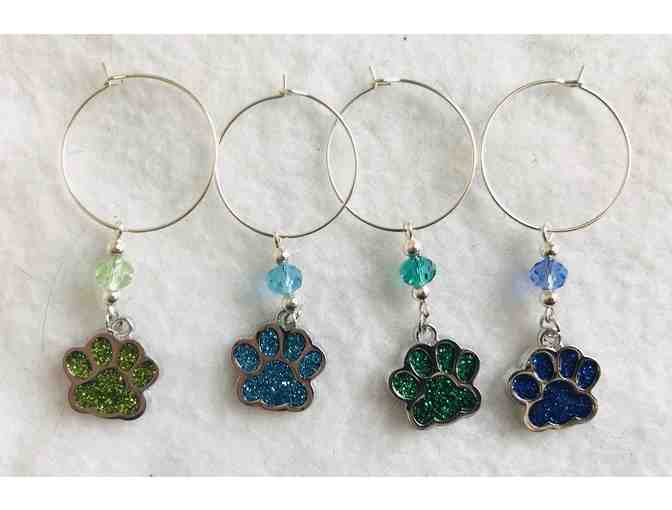 Paw Print Wine Glass Charms - Light Green, Dark Green, Light Blue, and Dark Blue