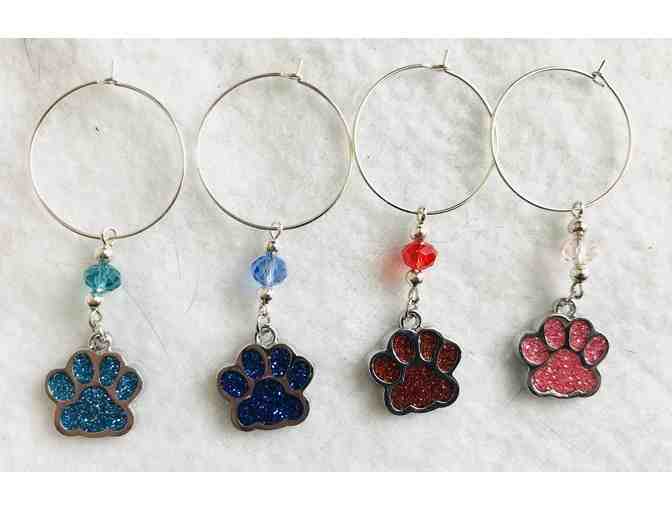 Paw Print Wine Glass Charms - Light Blue, Dark Blue, Red, and Pink