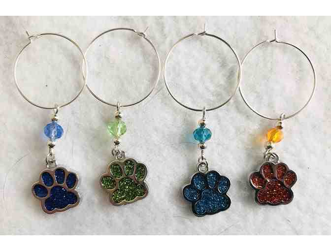 Paw Print Wine Glass Charms - Dark Blue, Light Blue, Green, and Orange