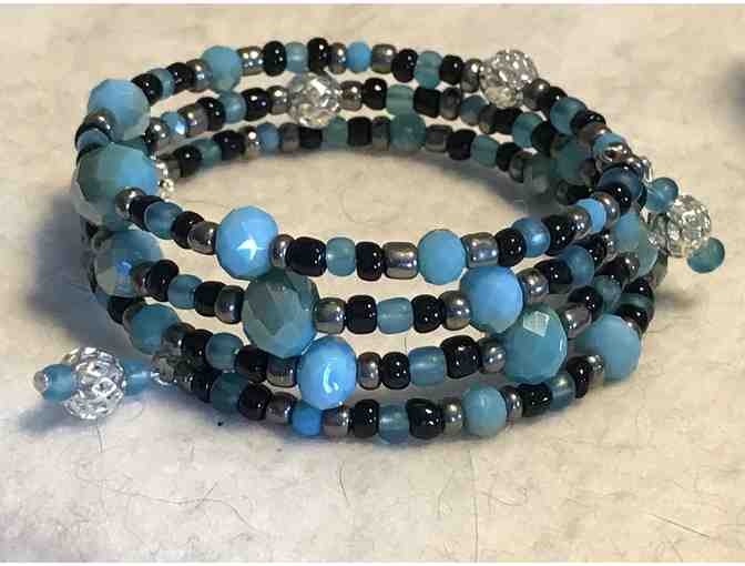 Lightweight Beaded Wrap Bracelet - Blue, Black, and Silver