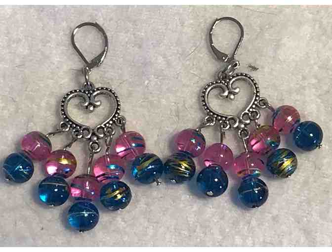 Heart Chandelier Czech Glass Bead Earrings - Pink/Blue