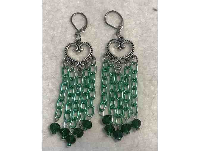 Heart Chain Chandelier Czech Glass Bead Earrings - Green