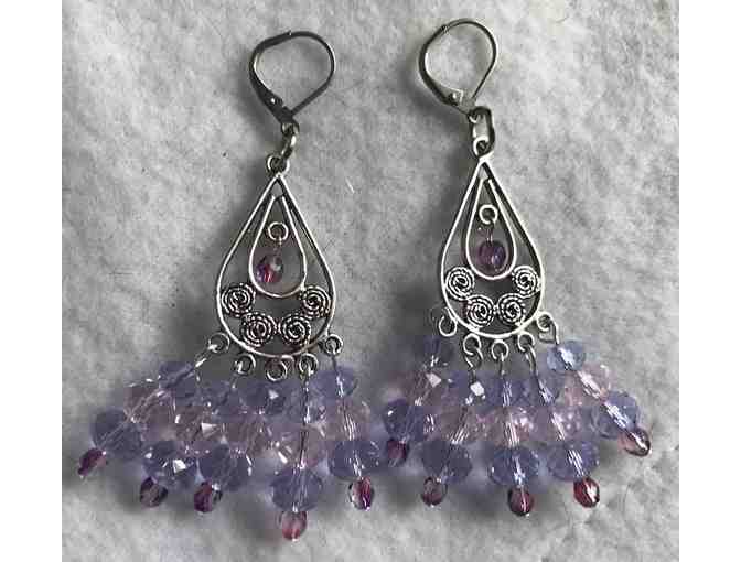 Purple Teardrop Chandelier Czech Glass Beaded Earrings - Surgical Steel