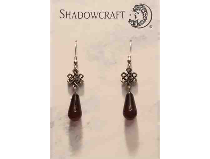 Tibetan "Eternity Knot" Earrings with Carnelian Drops
