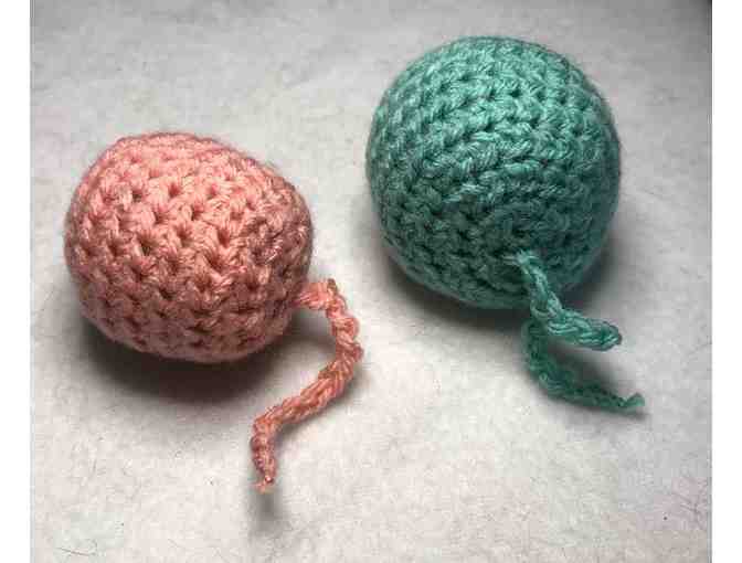 Set of 2 catnip ball toys. Contains USDA certified organic catnip (PetLinks Pure Bliss catnip). Each measures approx 1.5 - 2 inches in diameter