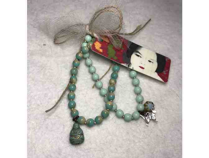 Double, pre-stretched, USA made elastic, stretch bracelets. All are made with glass from the Czech Republic. The charms vary, most are metal with shapes of kitties or eyes or hands. One size fits most.