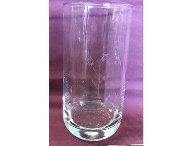 This cute 16 oz etched glass tumbler features a delicate etched design