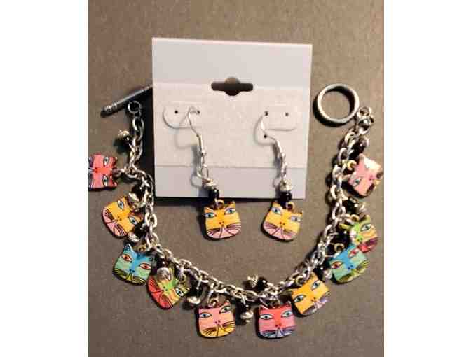 Gorgeous! 8" bracelet with half inch cat faces interspersed with sweet black beads atop a silver bead.