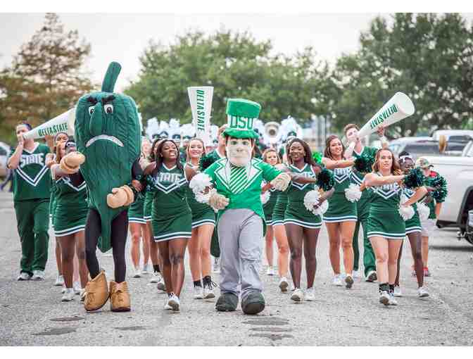 4 Delta State cheerleaders will check the GIRLS out of class at 1:45 p.m. on Thursday, April 7 to cheer, jump, and stunt in the school gym until just before time to pack up for the day. Participants will recieve a free cheer tshirt and a snack!