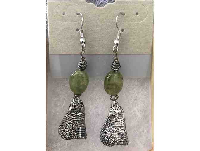 2" Earrings - Serpentine Stone Bead with Silver Cats