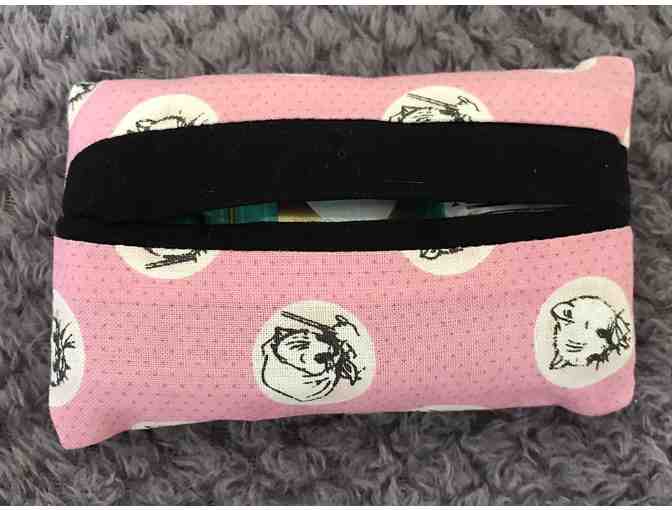 Ever discover that the pocket size tissue pack that you through in your luggage or purse has manged to fail to protect the tissues from picking up lint and dirt? Well this handy tissue holder is just the thing to help keep your tissues ready to go. Comes with 1 pack of pocket size tissues. Measures approx 4.5 in x 3 in x 1 in