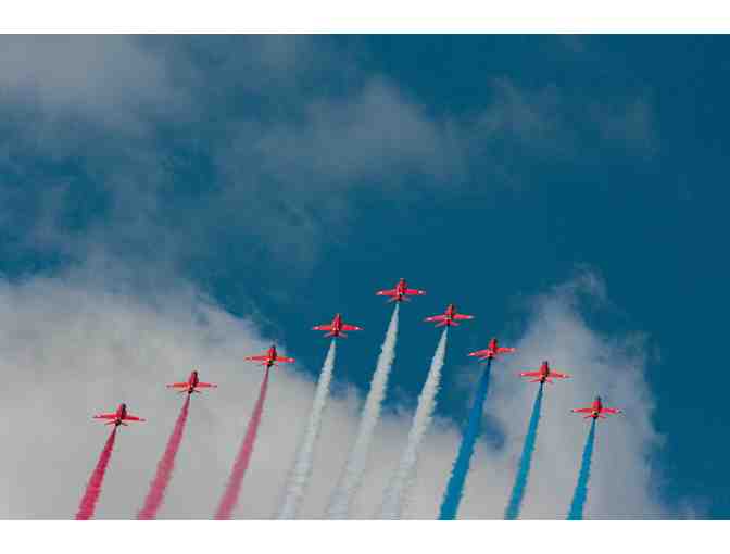 The British Red Arrows leaving the red, white, and blue colors of the Union Jack while performing a high speed maneuver during a summer air show at Stewart International Airport. The Red Arrows flew right over the crowd’s heads allowing for the perfect alignment of the photo.