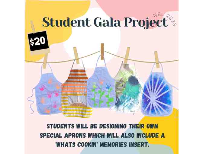 Students will be creating their own work of art as a functional keepsake for years to come. Sturdy aprons will withstand use and the washing machine. A memorable 'Whats Cookin' insert will include their thoughts and feeling for the year.