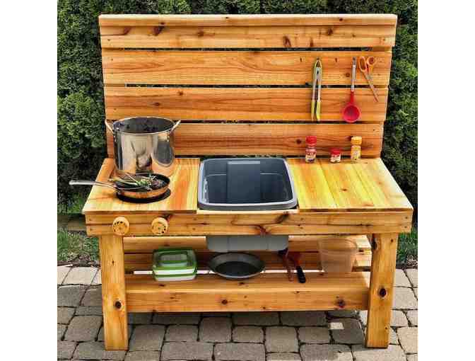 Each $25 "Buy Now" lot will go toward making a kindergarten mud kitchen a reality. (Depicted are some possible DIY and purchasable models; faculty has not settled on a specific design yet but estimate costs around $500.)