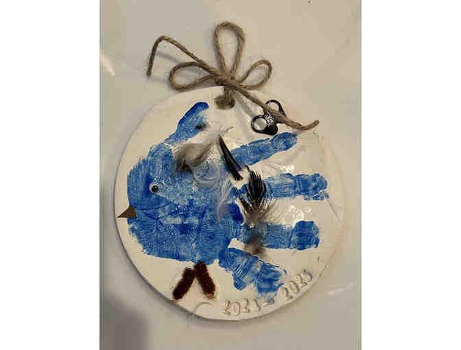 Reggio inspired clay ornaments, each ornament features an impression of your child’s little hand, preserving this moment in time and their growth during the year. Uniquely decorated to represent the spirit of their classroom—the Bird Watcher Room! Crafted with love by your child, these ornaments are not just decorations; they are cherished memories that capture the essence of their learning environment.
