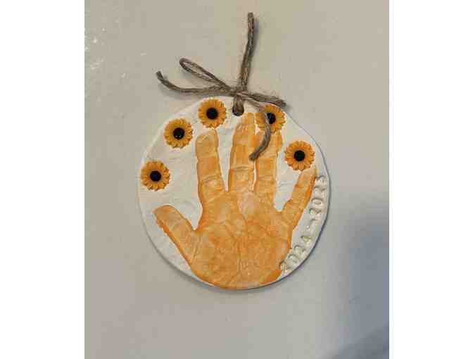 Reggio inspired clay ornaments, each ornament features an impression of your child’s little hand, preserving this moment in time and their growth during the year. Uniquely decorated to represent the spirit of their classroom—the Sunflower Room! Crafted with love by your child, these ornaments are not just decorations; they are cherished memories that capture the essence of their learning environment.