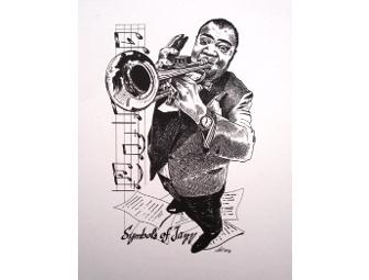 An 8 1/2 x 11 print of Louis Armstrong, who is considered to be the most influential jazz musician in history.