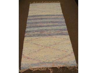 Beautiful rag rug crafted by Nancy Woodworth and donated by New Mexico Women's Foundation. Ms. Woodworth is a northern New Mexico artisan. Rug is in muted pastel colors and is absolutely beautiful.