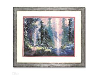 REMARKABLE ARTWORK OF JAMES COLEMAN! This is a classic piece of artwork by James Coleman, with sweeping skies and rich forests. "Misty Peace in Paradise" is a limited edition lithograph on paper by James Coleman, numbered and hand-signed by the artist. This piece has a brand new custom archival frame with UV-resistant plexiglass and is ready to hang!
